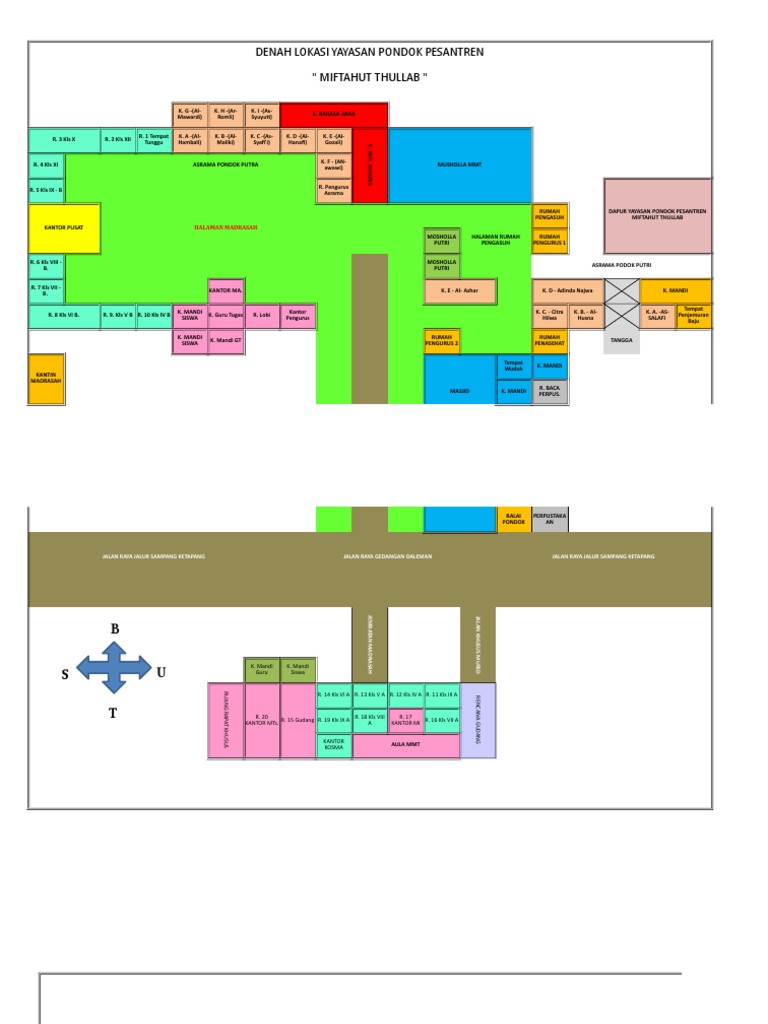 Di belakang site terdapat sungai yang mengalir. Berikut akan kami jelaskan detail denah per bagian. Kawasan pesantren dengan luas sekitar 45 ha ini masih dikelilingi oleh lahan kosong dan pemukiman penduduk.